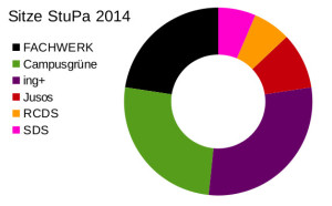 Neu im StuPa ist der SDS (Sozialistisch Demokratischer Studierendenverband) sowie nach einem Jahr Pause der RCDS mit je 2 Sitzen. Entsprechend verlieren die beiden gößten Listen FACHWERK und ing+ zwei bzw. drei Mandate zugunsten der neuen Listen und der Campusgrünen. Die Jusos entsenden wie im vorigen Jahr 3 Mitglieder.